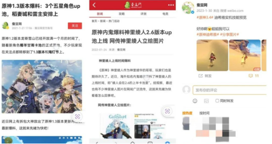 In the litigation, miHoYo asserted that between 2021 and 2023, "Candou.com" and its affiliated self-media accounts continuously published unreleased content related to Genshin Impact. This content encompassed core information such as character attributes (numerical values), event schedules, and skill mechanics. The key characteristics of the infringement included:(1)Large Scale of Content: Nearly 100 infringing posts were involved.(2)Extended Time Span: The leaks spanned across 16 game versions.(3)Obvious Non-public Sources: The content was clearly obtained through non-official channels.(4)Traffic-Driven Packaging: The content was packaged using sensationalist labels such as "Insider Leaks" (Neigui) and "First-look Exclusives" to drive user traffic.