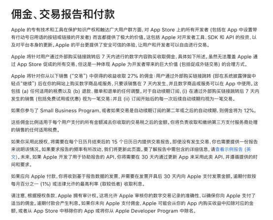 On January 17, 2024, Apple announced a series of adjustments to its App Store terms, allowing U.S. developers to provide external payment methods in their apps. However, Apple still charges developers high commissions and requires payment and transaction reports to be submitted within prescribed monthly deadlines.