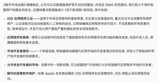 Pursuant to the requirements of the new Digital Markets Act (DMA), Apple released iOS 17.4 on March 6, 2024, for the first time opening app sideloading in the EU, allowing eligible developers to distribute apps via websites. Apple also imposed a series of requirements: distributed apps must comply with Apple’s review standards, and the website must be registered in App Store Connect. Developers eligible to distribute apps via the web must have been registered members of the Apple Developer Program in the EU for two consecutive years, and the app must have exceeded one million first-time installations in the EU in the previous year. After exceeding one million installations, Apple charges EUR 0.5 for each additional new user installation.