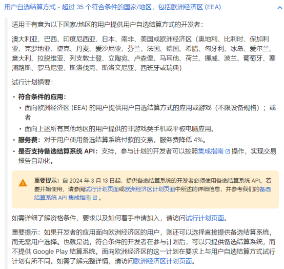 Since opening third-party payments in response to South Korean policy requirements in 2021, Google has gradually expanded its policies to more than 35 eligible countries or regions. However, at present, optional billing systems for game products are only available to users within the European Economic Area.