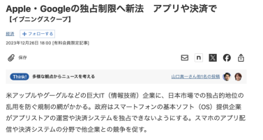 On December 26, 2023, according to Nikkei News, Japan is also preparing to introduce legislation requiring tech giants such as Apple and Google to allow external app stores to conduct payments on their mobile operating systems, in order to curb abuses of their dominant market positions. According to reports, the legislation restricting monopolistic conduct by Apple and Google is expected to be submitted to the Japanese parliament in 2024.