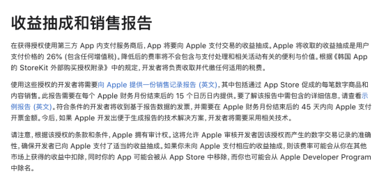 Against this backdrop, Apple allows Korean developers to offer third-party payment systems, subject to application, monthly sales reporting to Apple, and a 26% commission charged by Apple.