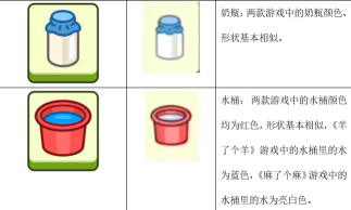 (《羊了个羊》vs《麻了个麻》的案件中相似内容比对的图例)