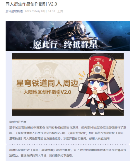 以下片段引自《星穹铁道同人衍生作品创作指引V2.0》,具体规则请查阅原文: