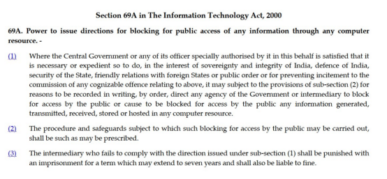 Section 69A of the Information Technology Act, 2000, referenced in the screenshot, serves as the primary legal basis for Indian authorities' app ban enforcement actions. In 2020, the Indian government banned 59 Chinese apps citing data security and national sovereignty concerns. These included popular apps such as TikTok, SHAREIt, UC Browser, CamScanner, Helo, Weibo, WeChat, and Club Factory. India's Ministry of Electronics and Information Technology stated in a press release that it had received “numerous complaints from various sources, including several reports about the misuse of certain mobile applications on Android and iOS platforms, which steal user data and secretly transmit it to servers located outside India without authorization.”
