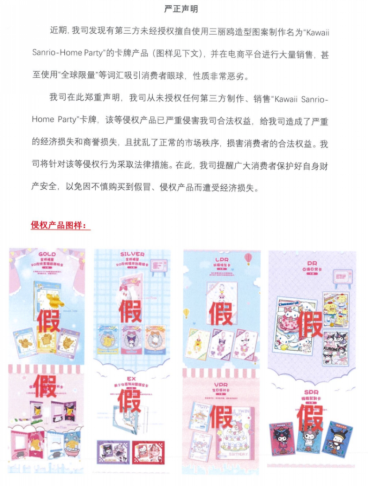 For instance, in 2023, the WeChat public account “HelloKittyFamily” issued a formal statement regarding copyright violations involving card products.