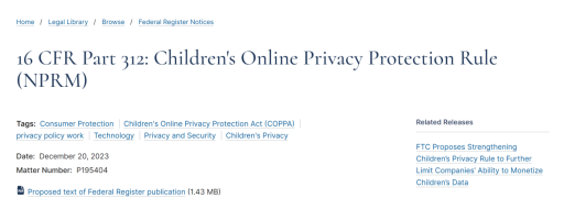 In 2019, the U.S. FTC initiated a review of the COPPA rules. On December 20, 2023, the FTC issued a notice seeking public comment on proposed amendments to the COPPA rules. The proposed revisions impose new restrictions on the use and disclosure of children's personal information, further limiting companies' ability to monetize children's data as a condition for providing services. The proposed amendments shift the responsibility for safeguarding children's online privacy from guardians to service providers.