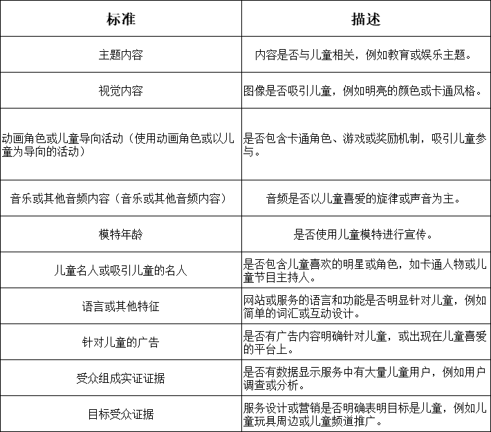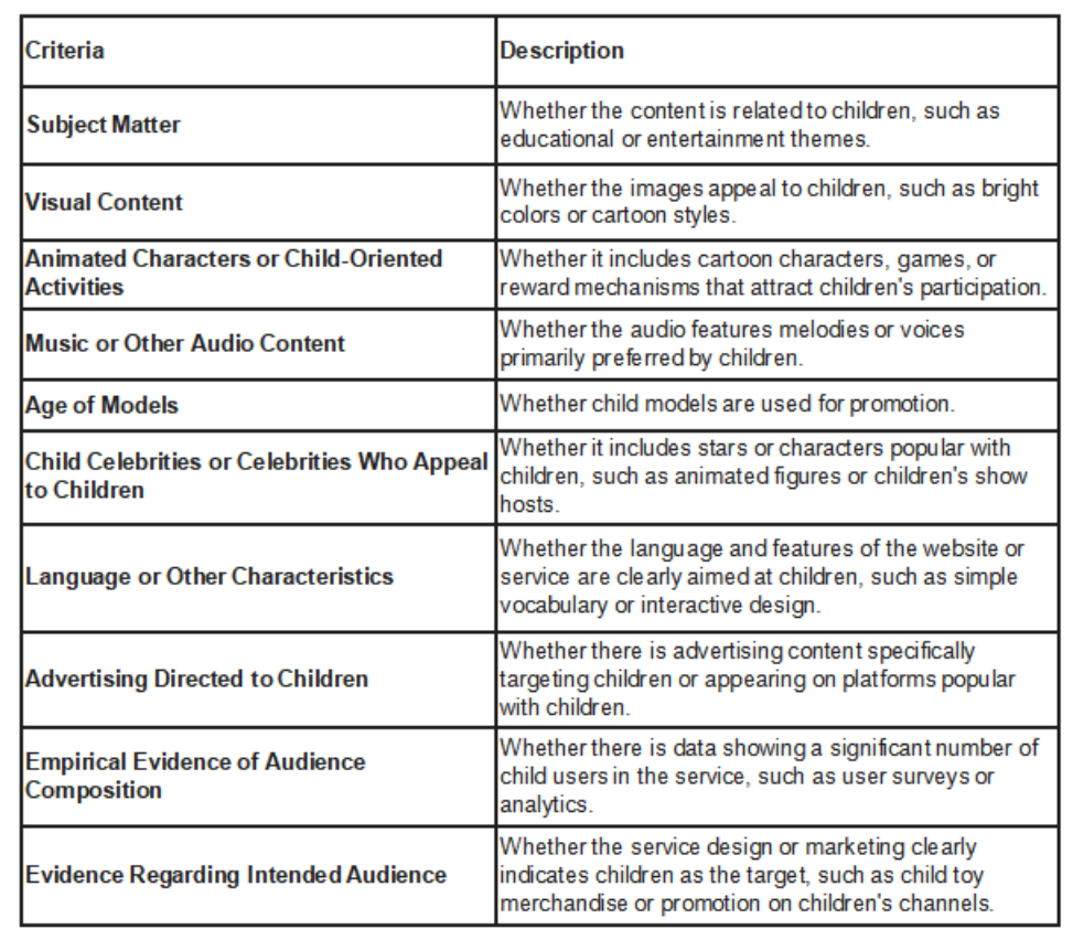 Additionally, third-party evidence—such as audience composition data and target audience evidence—will be used to assess minor involvement. Detailed evaluation criteria and descriptions are outlined in the table below: